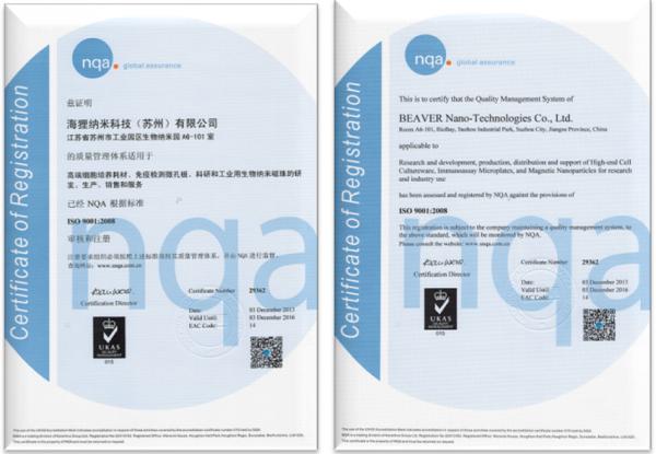 ISO9001質(zhì)量管理標準是迄今為止世界上使用最廣泛、最成熟的質(zhì)量管理方法;NQA是一家權(quán)威的跨國認證機構(gòu),使用英國國家質(zhì)量保證有限公司的認證資源,頒發(fā)經(jīng)UKAS認可的管理體系認證證書。海貍公司作為一家面向國際的生物納米高科技企業(yè),成立伊始就將質(zhì)量視為企業(yè)的生命,從產(chǎn)品設(shè)計開發(fā)、生產(chǎn)、檢驗、售前及售后支持等所有環(huán)節(jié)均嚴格按照ISO9001質(zhì)量管理標準進行全方位、規(guī)范化的管理和控制。海貍采用國際通行的質(zhì)量管理模式對公司實施管理,并通過了國際權(quán)威機構(gòu)NQA的審核認證,是對海貍質(zhì)量管理體系的最好的肯定;這將對進一步提高公司的質(zhì)量管理水平,推動更好更快的發(fā)展奠定堅實的基礎(chǔ)。海貍將繼續(xù)以顧客為關(guān)注焦點,持續(xù)改進和提升公司的質(zhì)量管理水平,以最好的產(chǎn)品和服務(wù)迎接市場的檢驗和挑戰(zhàn)。