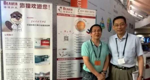 海貍納米科技(蘇州)有限公司CEO任輝博士參加了本次會議,并有幸邀請到本次會議的科學(xué)組委會成員、美國科學(xué)院、中國科學(xué)院院士施一公博士到海貍展位參觀指導(dǎo)。施博士對海貍自主研發(fā)的BeaverBeads™蛋白純化磁珠系列產(chǎn)品表示贊賞,認(rèn)為海貍的新型磁珠產(chǎn)品在蛋白純化過程中具有非常重要的應(yīng)用前景,尤其在粗蛋白簡單、快速、低成本處理方面有不可取代的優(yōu)勢。同時(shí),施博士對回國創(chuàng)業(yè)的學(xué)子表達(dá)了深切的關(guān)注和支持,希望回國創(chuàng)業(yè)學(xué)子能做強(qiáng)、做大民族品牌。任輝博士對施老師的支持和鼓勵表示由衷的感謝,并表示一定要發(fā)揮海貍團(tuán)隊(duì)技術(shù)優(yōu)勢,把產(chǎn)品做好,真正做一個(gè)生物工具行業(yè)的民族品牌,并走向世界!
