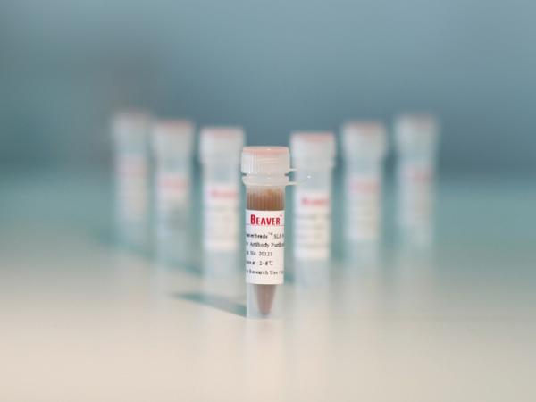 BeaverBeads™ Mag NHS和BeaverBeads™ Magrose NHS都是表面為NHS基團(tuán)修飾的磁珠,能夠與帶有伯胺基團(tuán)的蛋白和其他分子形成穩(wěn)定的肽鍵,用于親和純化或者分析檢測(cè)抗體、抗原和其他生物分子。與傳統(tǒng)的羧基、氨基磁珠相比,表面含NHS基團(tuán)的磁珠無(wú)需事先采EDC/NHS或戊二醛進(jìn)行活化,只需簡(jiǎn)單地將含伯氨基的生物配體溶解于偶聯(lián)緩沖液中,室溫下將蛋白溶液與Mag NHS磁珠混合1~2h便可將生物配體共價(jià)偶聯(lián)到磁珠上,具有操作簡(jiǎn)單、偶聯(lián)條件溫和、生物配體偶聯(lián)快速高效的優(yōu)點(diǎn)。