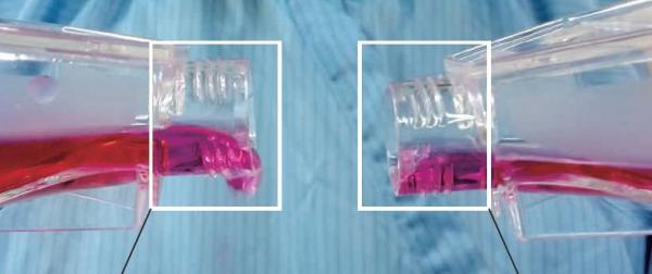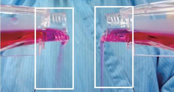 普通瓶口:培養(yǎng)液倒出終止,外瓶口掛壁 Smart瓶口:培養(yǎng)液倒出終止,液滴自動(dòng)縮回瓶?jī)?nèi),