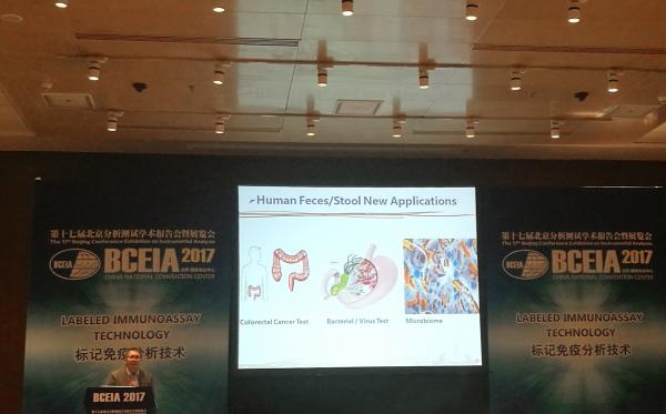 2017年10月9日,第十七屆北京分析測試學術報告會暨展覽會(BCEIA 2017),學術論壇 “標記免疫分析技術進展及其應用”在國家會議中心舉行,該論壇由解放軍總醫(yī)院生化科主任顏光濤教授主持。海貍生物醫(yī)學面向體外診斷和基因檢測領域,提供系列整體的樣本解決方案,作為生物樣本處理領域的引領者,公司CEO任輝博士受邀演講。
