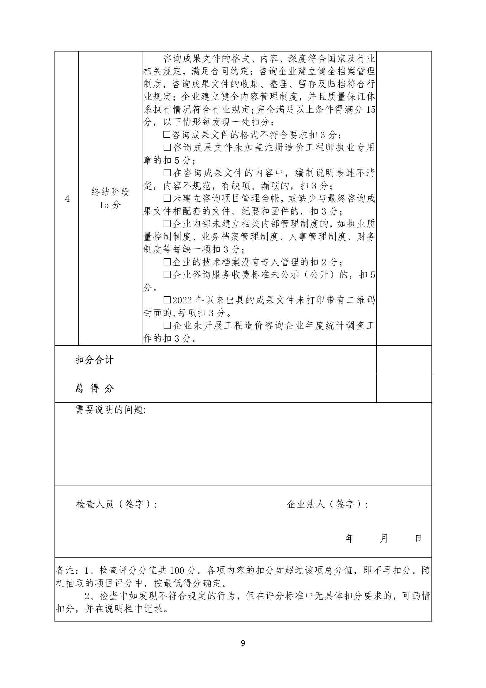 (三)不合格:工程造價咨詢企業(yè)發(fā)生過相關(guān)禁止的違法、違規(guī)行為;存在逾期未整改、整改后仍不合格,或咨詢成果文件專項檢查分值在60分以下的。