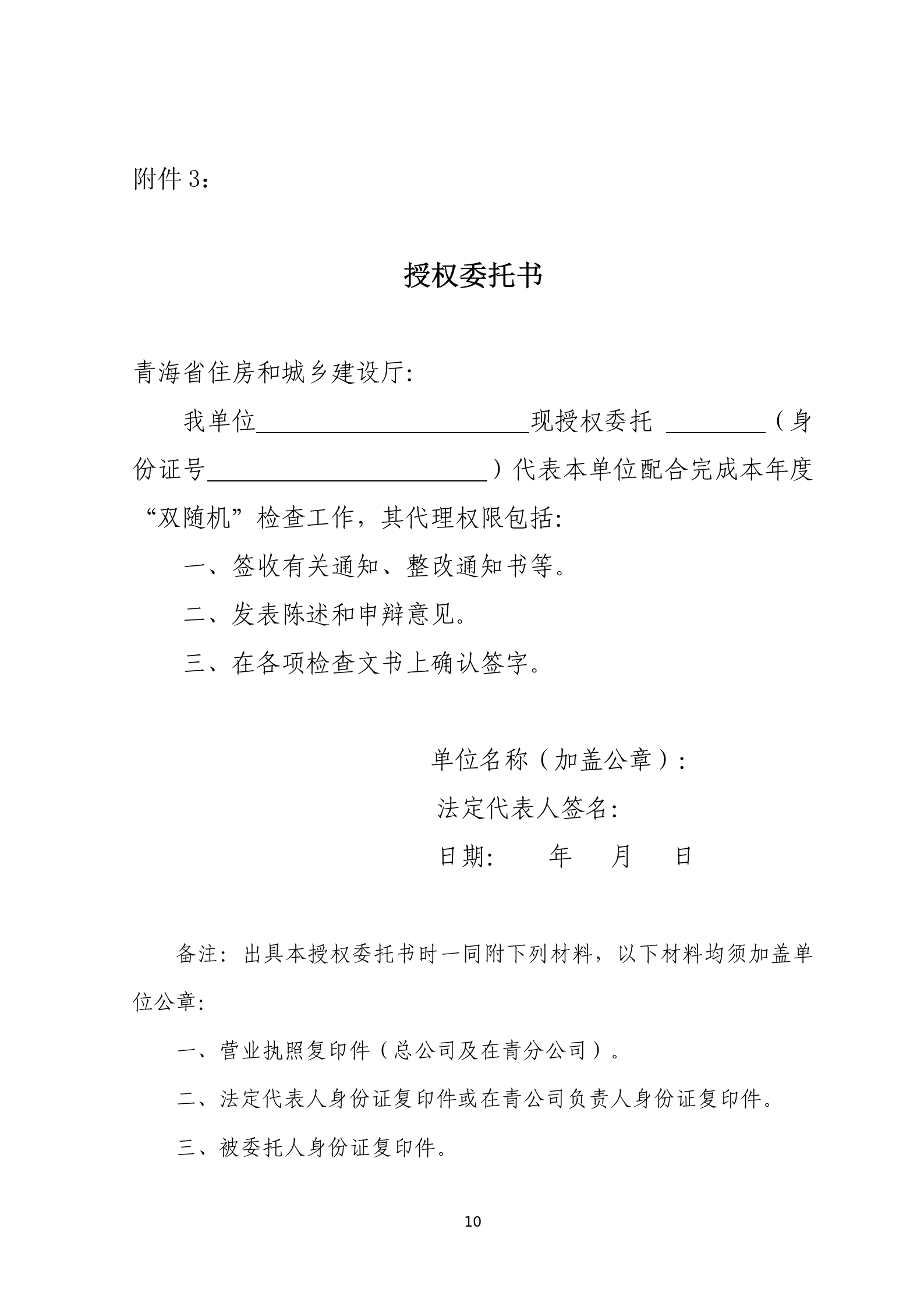 (二)各企業(yè)要按照通知要求做好受檢工作,企業(yè)法定代表人不在場的應(yīng)提前簽訂授權(quán)委托書(附件3),授權(quán)相關(guān)負責人配合開展檢查工作。企業(yè)技術(shù)負責人和出具成果文件的專業(yè)技術(shù)人員應(yīng)到場配合檢查工作,主動向檢查組提供成果文件和有關(guān)資料,并對文件資料合法性、真實性、完整性負責。