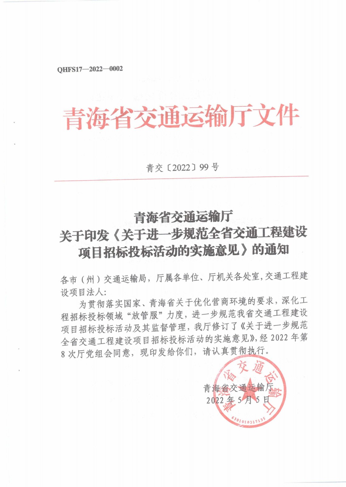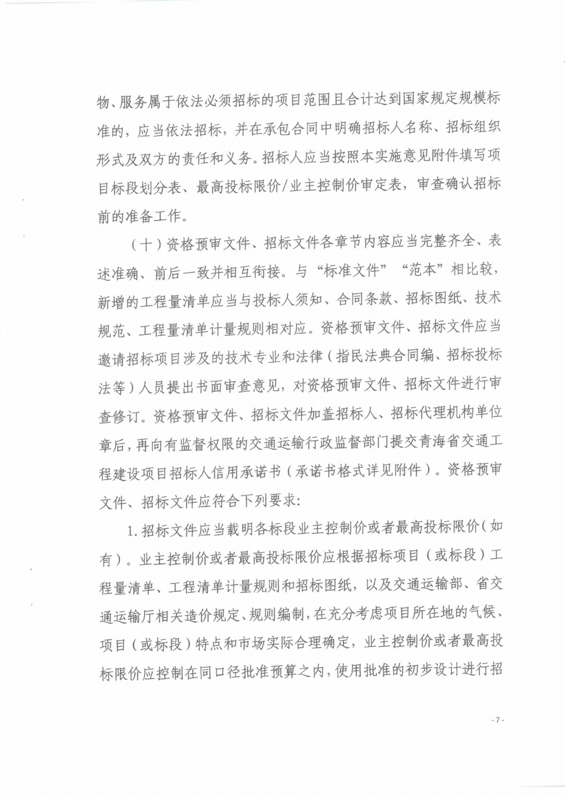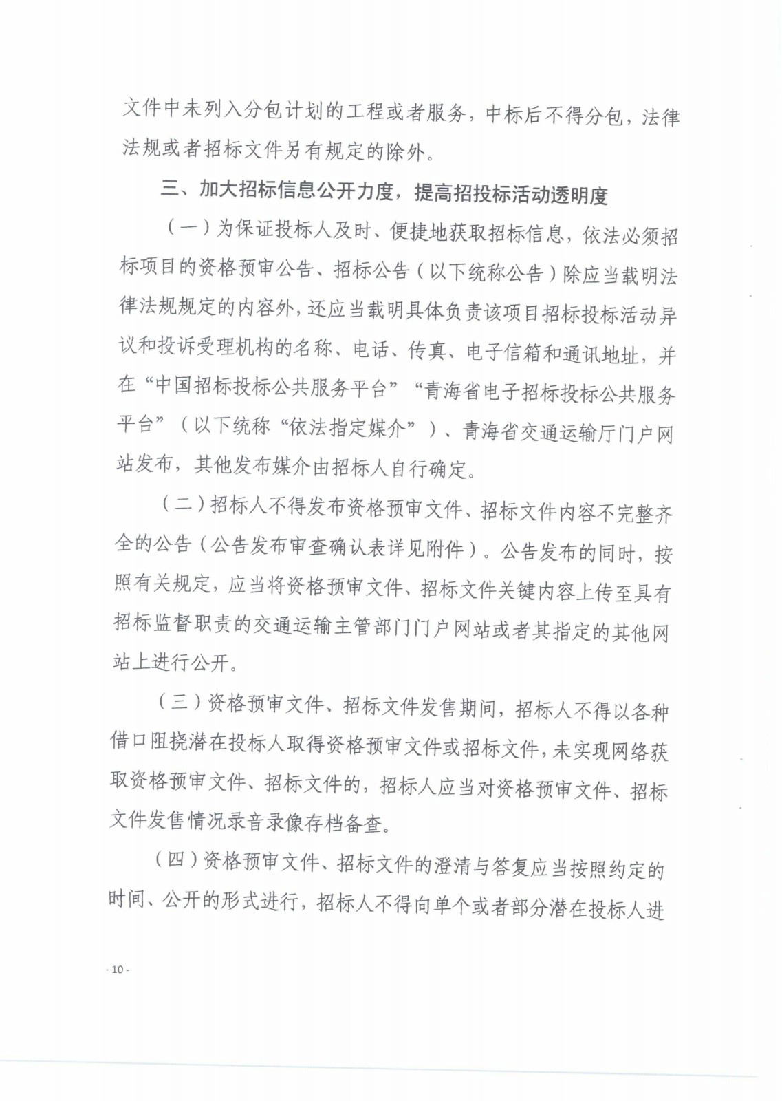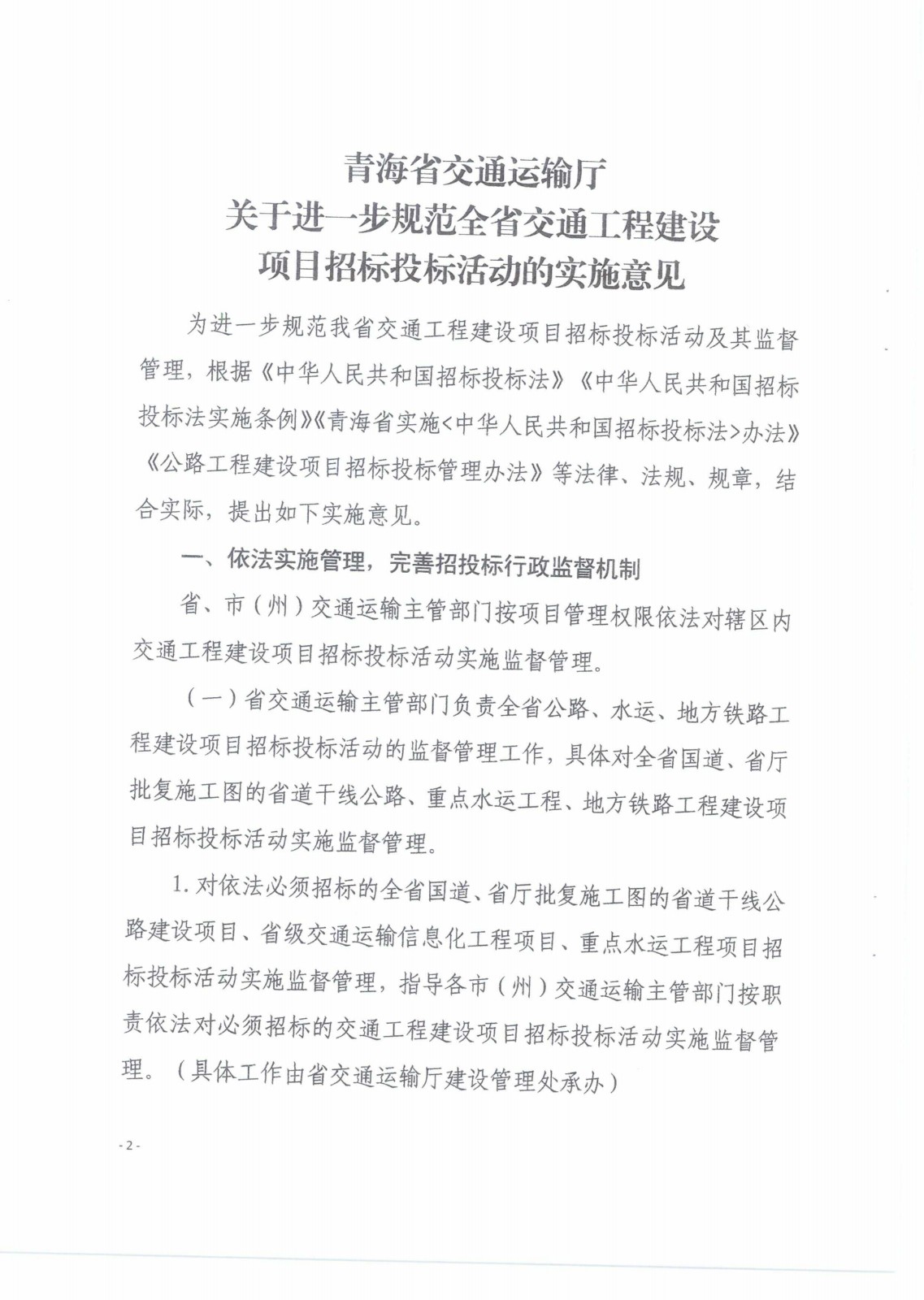 青海省交通運輸廳關(guān)于進一步規(guī)范全省交通工程建設(shè)項目招標投標活動的實施意見