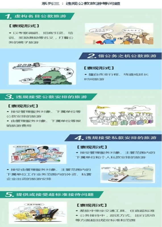 5.公款旅游以及違規(guī)接受管理和服務(wù)對(duì)象等旅游活動(dòng)安排;
